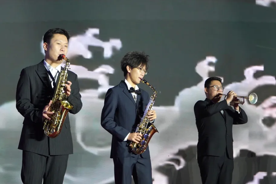 晚会分为“青春起航 逐光而行”“时代同频 梦想共振”“薪火相传 青春接力”三个篇章,融合歌曲、舞蹈、情景剧、小品等多种艺术形式。我校大学生艺术团以动感旋律拉开序幕,瞬间点燃全场热情;《匆匆那年》《云宫迅音》与西洋乐曲的创新融合引发全场共鸣;反诈主题小品以幽默形式传播防诈安全知识,将气氛推向高潮;校国旗护卫队与猎虎社团联袂呈现《以青春的名义》,飒爽英姿彰显青年担当;舞蹈《清庭云月》以古典舞韵致敬传统文化。晚会在《世界赠予我的》《错位时空》等温情歌曲中落下帷幕。